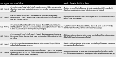สรุปมาตรฐานแต่ละส่วนและผลต่อ Bowie & Dick Test