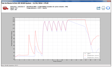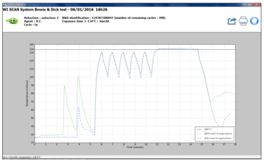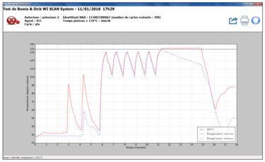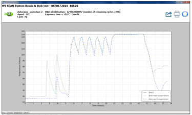 ในส่วนอิเล็กทรอนิกส์ (6) อัลกอริทึมที่พัฒนาโดย STERLAB จะวัดความแตกต่างของอุณหภูมิระหว่างโพรบสองตัว (ภายนอกและภายใน) ในช่วงต่างๆ ของวงจรการฆ่าเชื้อ Bowie & Dick อัลกอริทึมนี้ให้ผลลัพธ์ "ผ่าน (Pass) /ไม่ผ่าน (Fail)" และแสดง "ระยะปลอดภัย (Safety margin)"